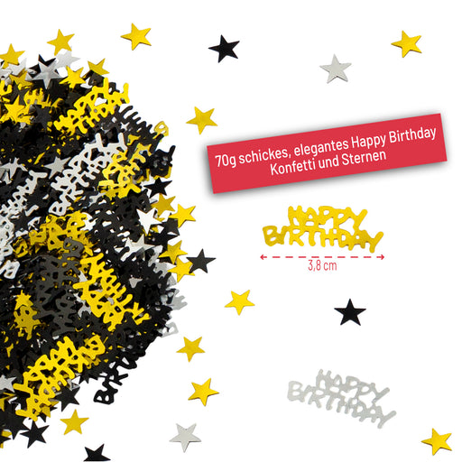 Vollständige Details anzeigenKonfetti Happy Birthday + Sterne - gold silber schwarz