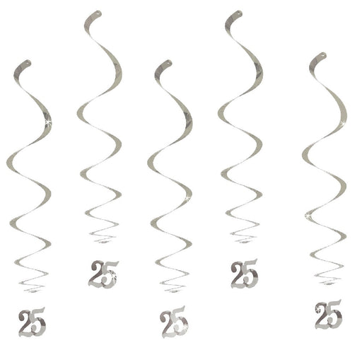 5 Wirbel Deckenhänger 25. Geburtstag Silberhochzeit mit Bändern und Ösen - silber