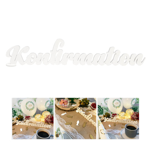 Dieser wunderschöne Schriftzug "Konfirmation" aus Echtholz wirkt richtig elegant. Der Schriftzug ist die perfekte Dekoration für die Konfirmation v...