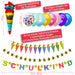 • Farbenfrohe Girlanden mit idealen Maßen: Zuckertüten-Girlande (1,70 m lang, jede Zuckertüte 15 cm hoch), Schulkind-Girlande (2,5 m lang, Buchstaben 15 cm hoch), Stern-Girlande (2 m lang, Sterne 11 cm groß) – ein echter Blickfang für jeden Raum