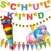 • Lieferumfang: eine Stern Girlande, eine Schulkind Girlande und eine Zuckertüten Girlande, ein Konfetti Luftballon Set & einen 100 cm großen Zuckertüten-Folienballon
