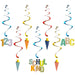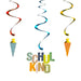 Das Highlight ist der große, ca. 77 cm große Folienballon mit der Aufschrift "HURRA Schulkind", begleitet von einer detailverliebten Girlande mit dem Schriftzug "Schulkind", ABC, 123 und vier farbigen Zuckertüten – veredelt mit glänzenden Metallic-Akzenten. Für zusätzlichen Wow-Effekt sorgen 7 Spiral Wirbel mit Schulmotiven und einer Länge von je 70 cm.