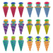Abgerundet wird das Set durch 18 liebevoll gestaltete Zuckertüten-Konfetti-Teile, eine Zuckertüten-Girlande (1,90 m) aus 12 stabilen Schultüten sowie eine bunte “Endlich Schulkind” Girlande (3 m) mit Wimpeln und Zuckertüten. 10 farbenfrohe Luftballons mit Motiven wie ABC, 1+2=3, 5 Konfetti Ballons runden das Deko-Erlebnis ab.