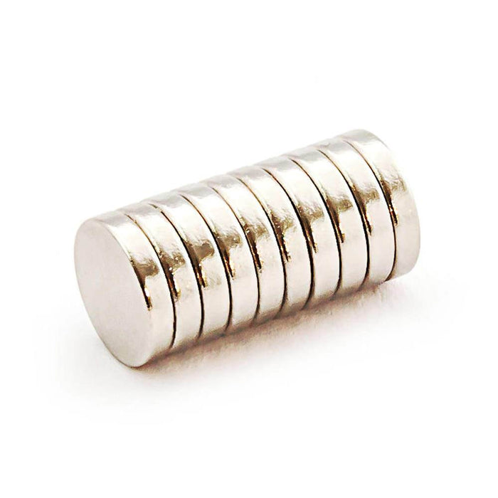 Diese Neodym Scheiben Magnete haben eine Magnetisierung von N38 und somit eine sehr gute Zugkraft. Sie kommen in der Farbe silber daher und haben eine Größe von 10 x 2 mm.
