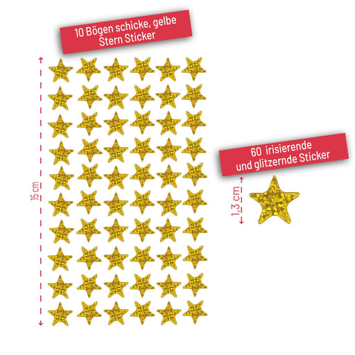 Bringen Sie festlichen Glanz in Ihre Projekte mit unserem Stern-Sticker-Set ! Mit insgesamt 600 goldfarbenen Stern-Aufklebern mit Hologrammeffekt l...