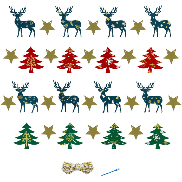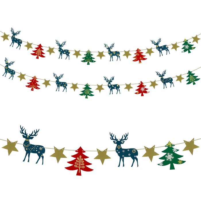 Weihnachten Girlande - Rentier Sterne Tannenbäume Hänge Deko Banner für Weihnachten Winter