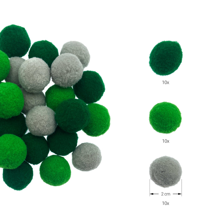 30 Mini Pompons zum Auffädeln Bunte Kugeln Bommeln für DIY zum Basteln Bastelpompons - grün grau