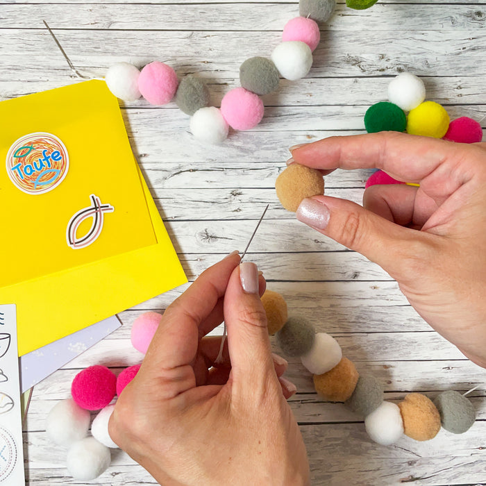Willkommen in der zauberhaften Welt der Mini Pompons zum Auffädeln – ein Set, das Ihre Bastelträume wahr werden lässt! In jedem Paket finden Sie nicht nur 30 exquisit gefertigte Mini-Bommeln, sondern auch einen geschmeidigen Faden und eine feine Nadel, um Ihre Ideen in die Realität umzusetzen.