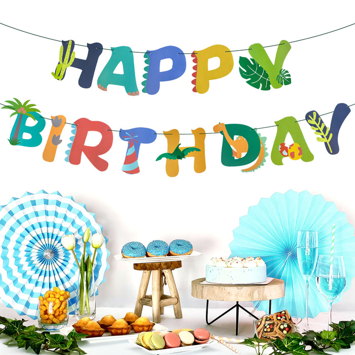 Happy Birthday Dino Girlande für Kinder Geburtstag Deko Dinosaurier Motto Party Banner Dekoration