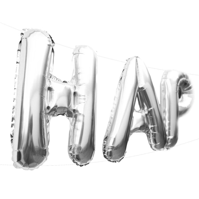 Diese wunderschöne Folien Luftballon Girlande besteht aus einzelnen Buchstaben, welche den Schriftzug „Happy Birthday“ ergeben. Diese Luftballon Girlande ist ideal als Deko zur Geburtstagsfeier bzw. Geburtstagsparty. Erzeugen Sie eine tolle, passende Atmosphäre mit dieser schönen Luftballon Girlande. Die Folienluftballons in Silber haben einen wunderschönen metallischen Glanz. Diese Luftballons sind auch für Helium geeignet. Zum Aufblasen der Folienluftballons wird ein Strohhalm benötigt, dieser ist nicht im Lieferumfang enthalten.
