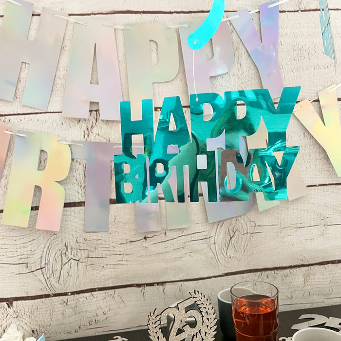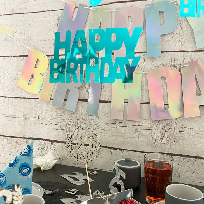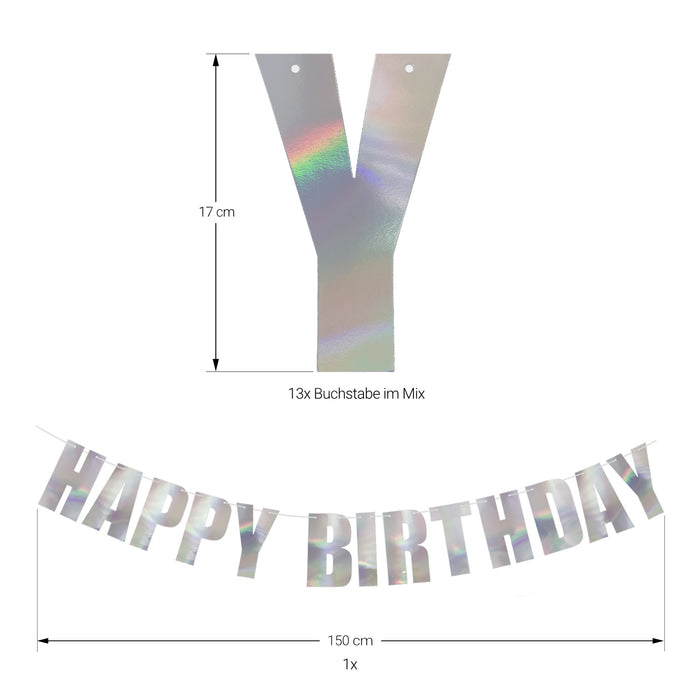Happy Birthday Girlande silber irisierend Deko Banner für Kinder Geburtstag Dekoration