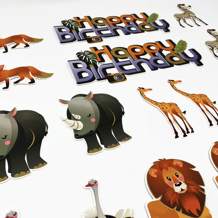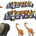 Motiv: Happy Birthday / Löwe / Fuchs / Krokodil / Strauß / Elefant / Giraffe / Nashorn / Zebra