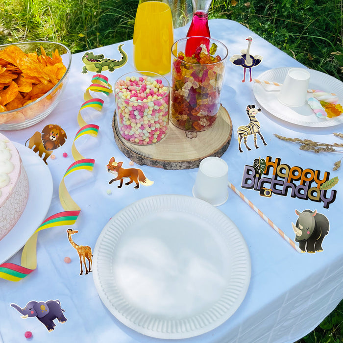 Happy Birthday Konfetti Set 18 Stk. farbenfrohe Tiere zum Spielen für Kinder Kindergeburtstag Deko