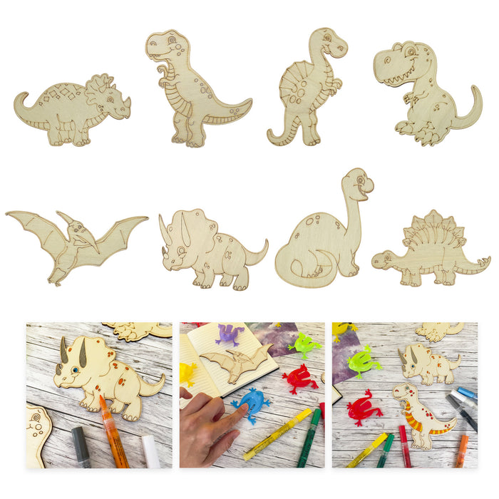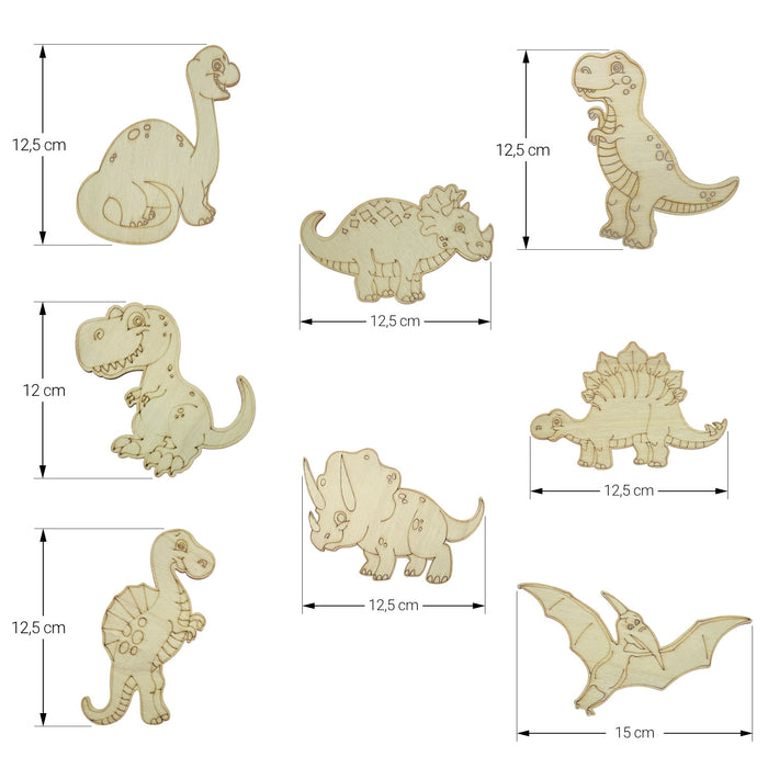 • Lieferumfang: 8x wunderschöne, coole Holz Dinosaurier zum Bemalen