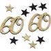 Konfetti Zahl 60 Geburtstag + Sterne aus Holz Streudeko Streuteile Deko 13g - gold schwarz